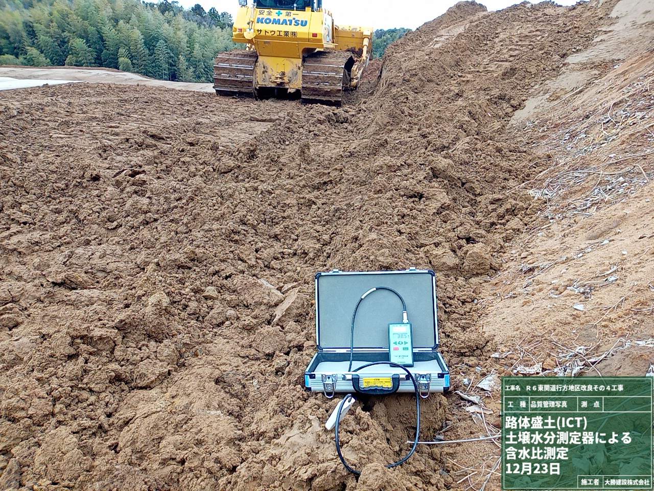 土を盛り、転圧し、どれだけ沈下したかを測ります。
