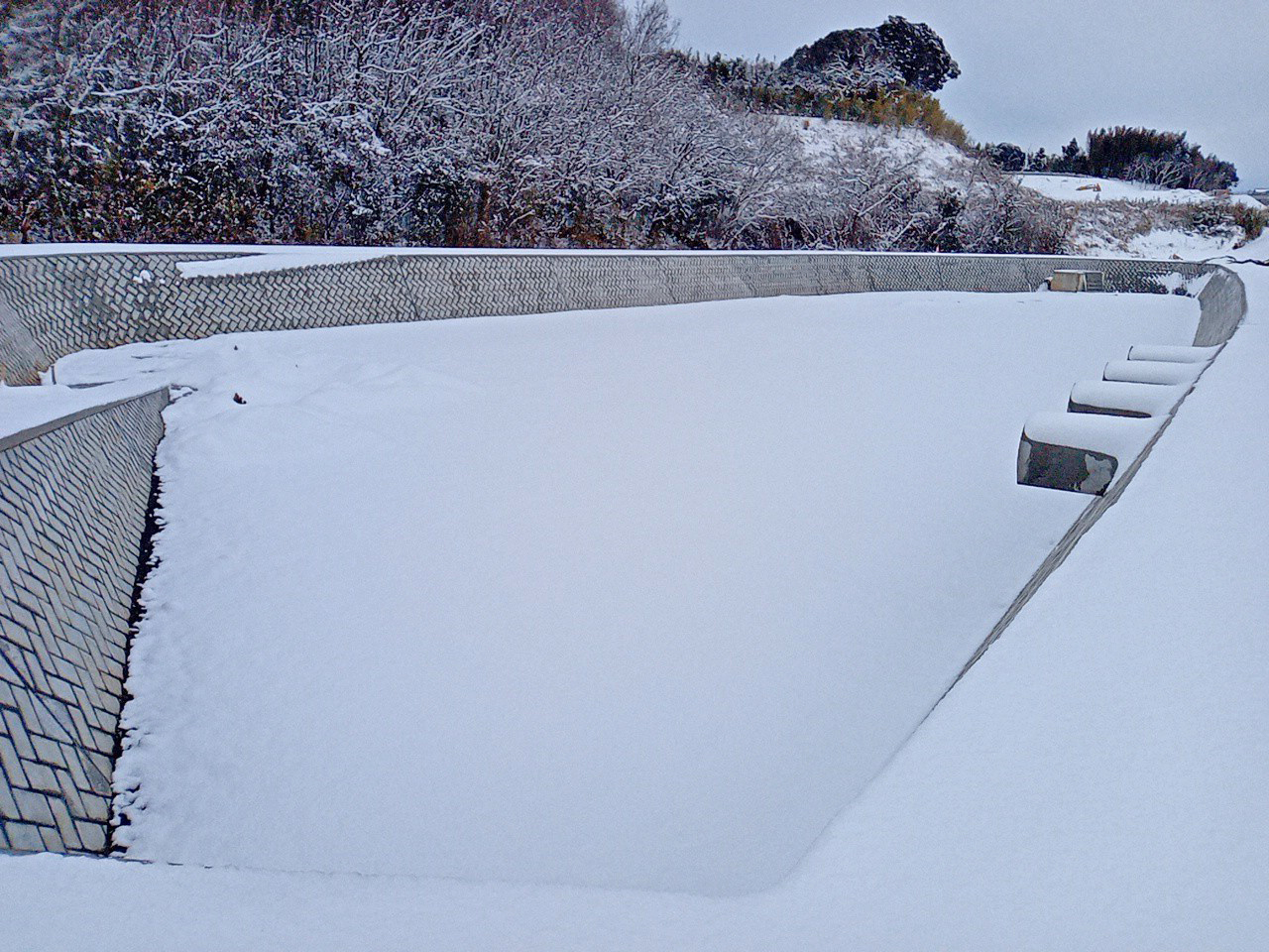 紅葉も芸術の秋も通り過ぎた、しんとした冬の日。現場では、調整池の"色づき"が始まりました。