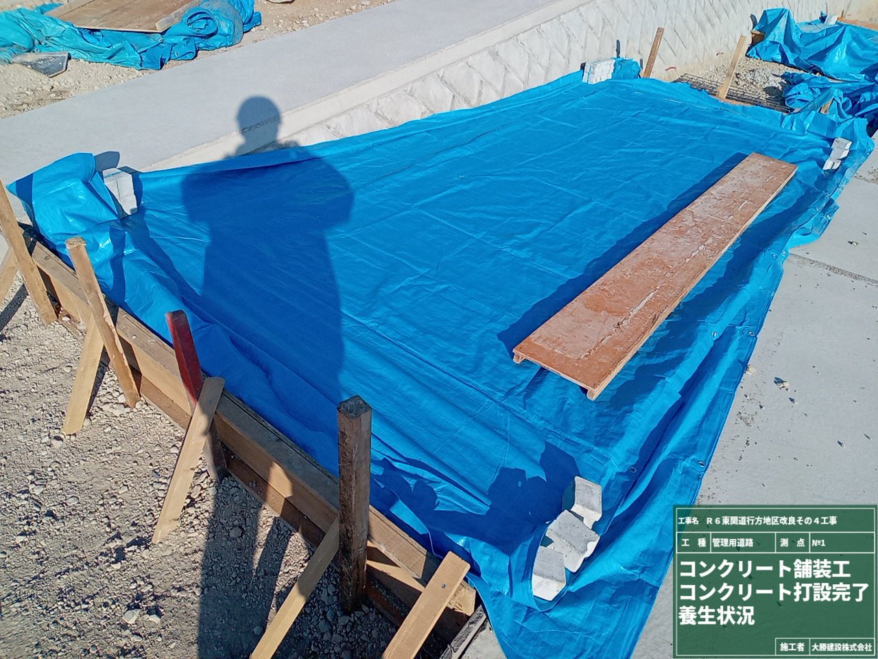 打設後は、コンクリートが急激に乾燥しないよう、しっかりと養生を行います。