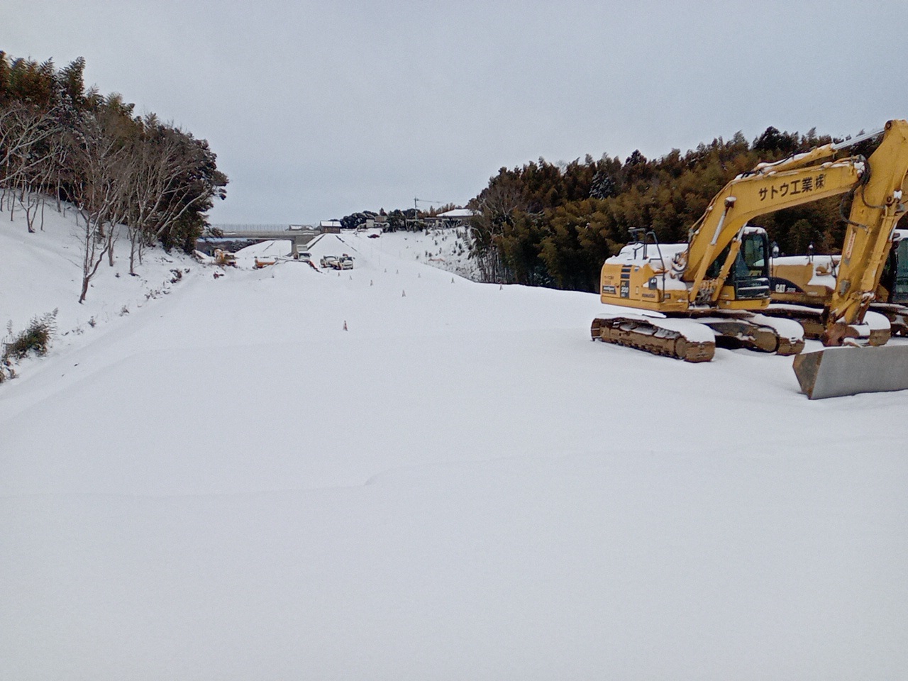 一方で、現場はまるでゲレンデのような景色に様変わり。
